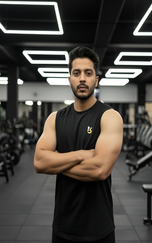 Premium stretch-fit Cotton Lycra tank with a sleek sleeveless design. Ideal for gym sessions and everyday activewear.